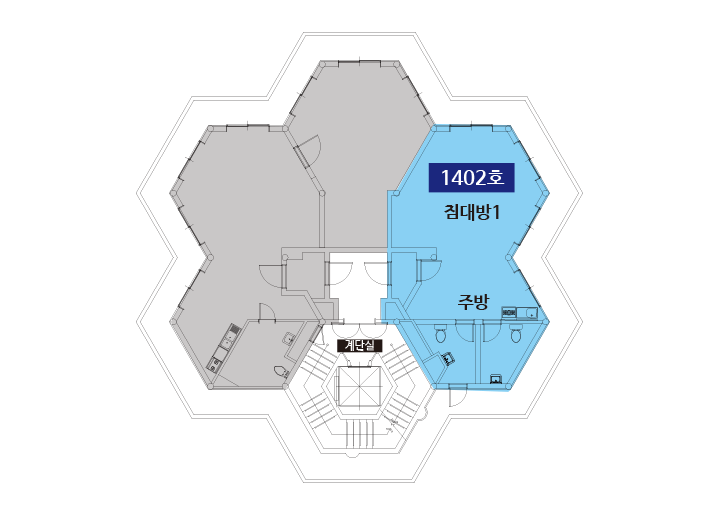 1. 엘리베이터가 13층까지 운영되므로 한개층 계단을 이용하셔야 합니다.