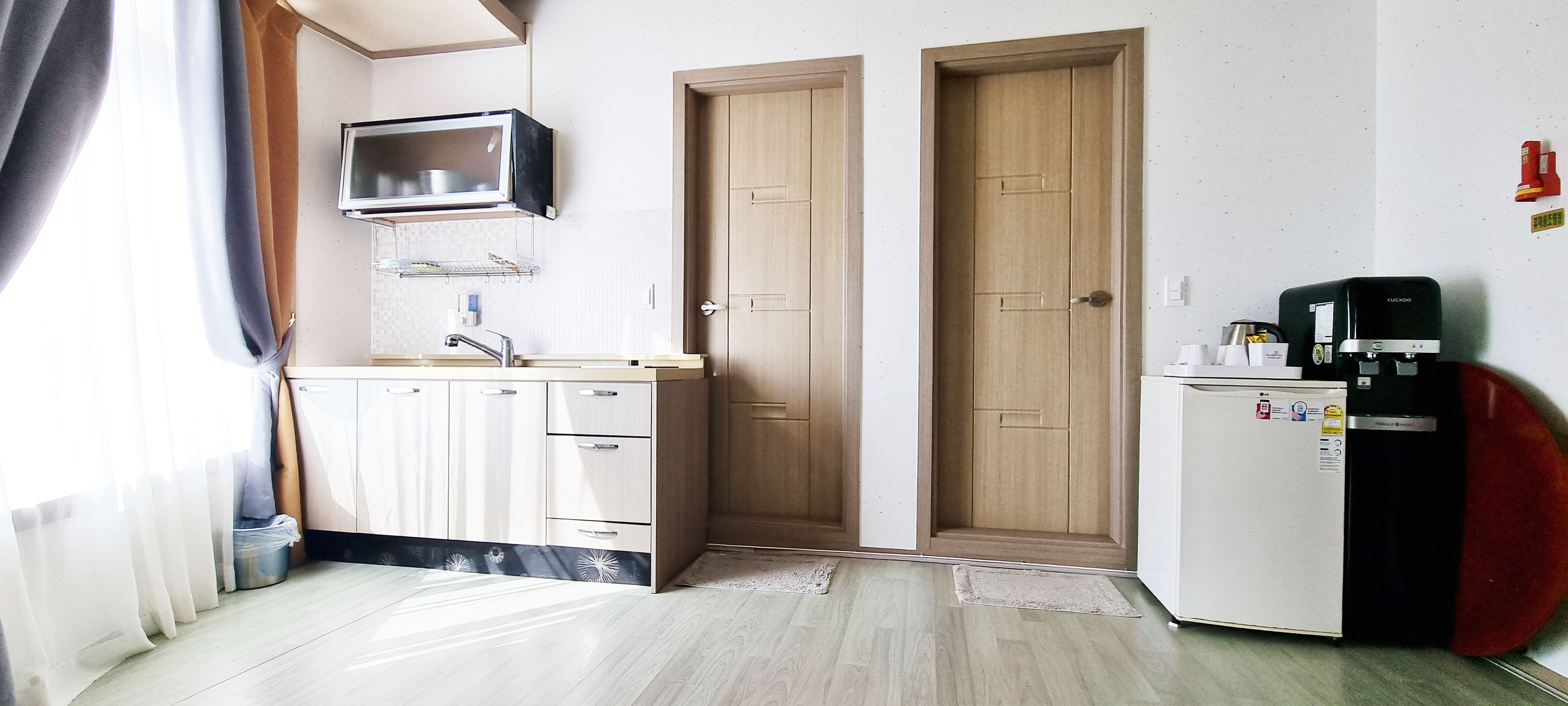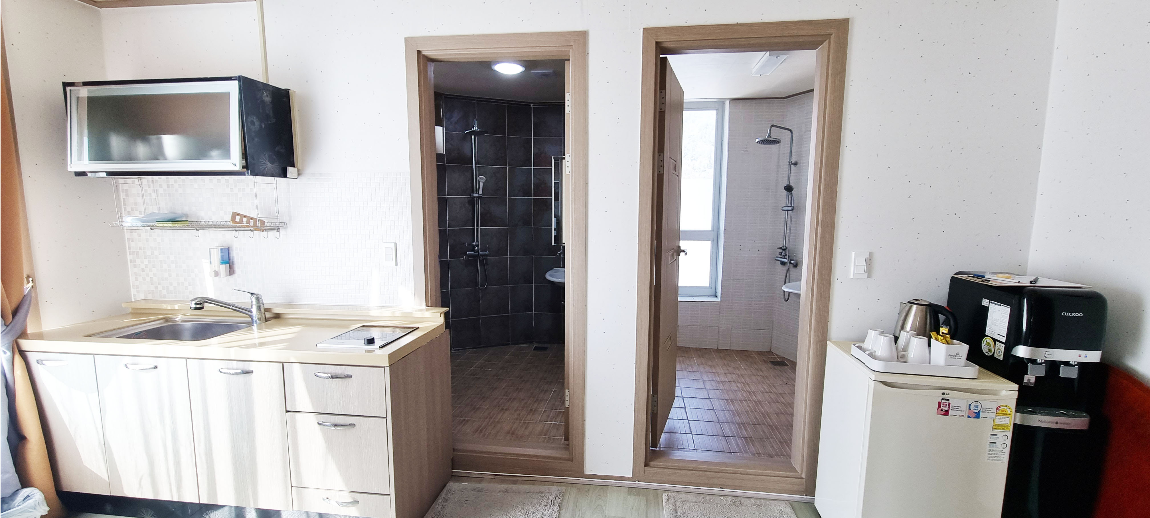 - 싱글침대 2개 + 주방 + 화장실 2개